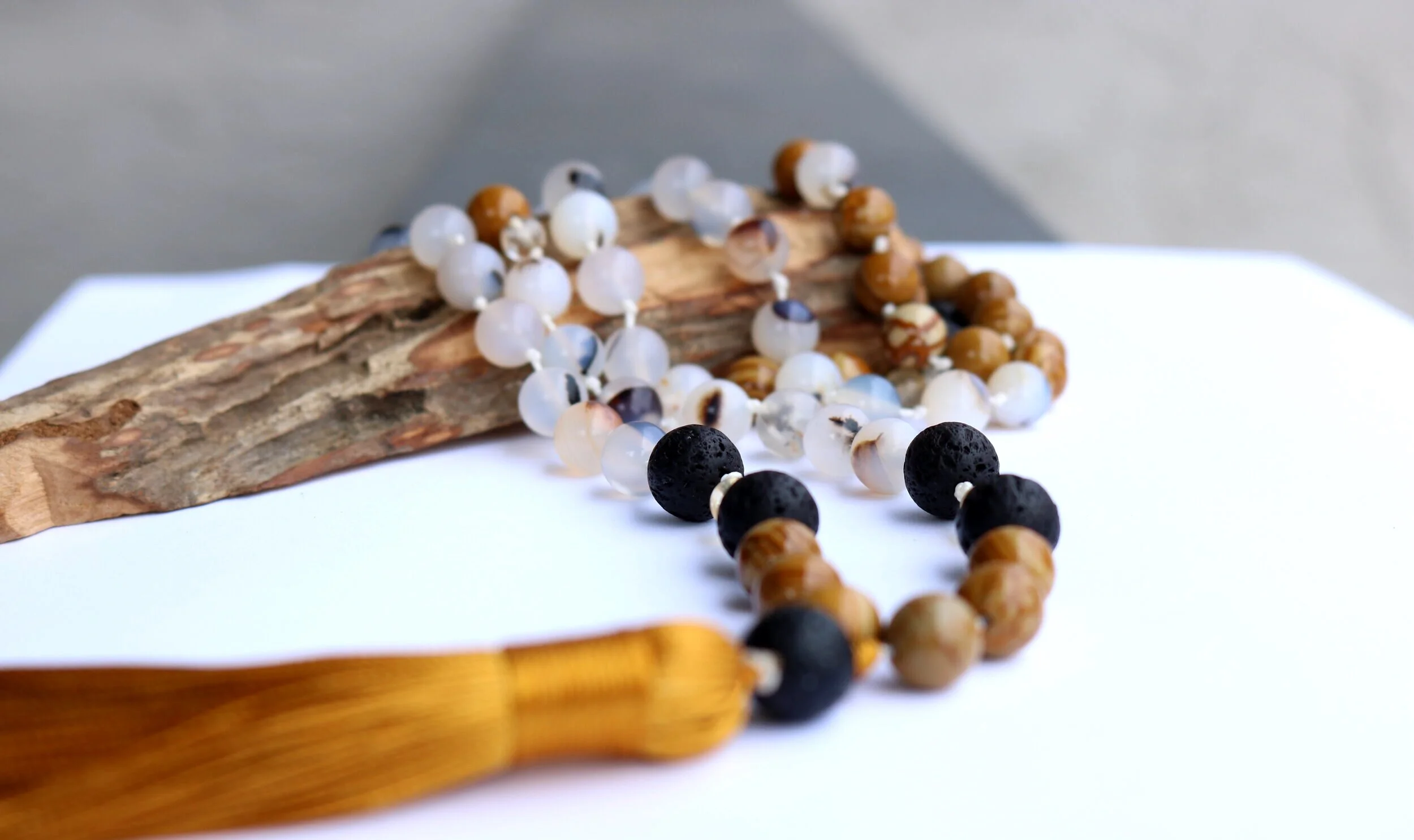 Japa Mala › Jumbo Abundance Mala Image 1 of 13 Image 2 of 13 Image 3 of 13 Image 4 of 13 Image 5 of 13 Image 6 of 13 Image 7 of 13 Image 8 of 13 Image 9 of 13 Image 10 of 13 Image 11 of 13 Image 12 of 13 Image 13 of 13 Jumbo Abundance Mala Sale Price: $90.00 Original Price: $120.00 Sold! Obsidian, Dendritic Agate, Picture Jasper, Citrine Sold! Added! Obsidian, Dendritic Agate, Picture Jasper, Citrine